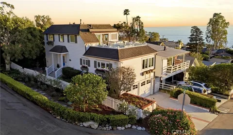 JUST SEVERAL BLOCKS FROM WORLD CLASS BEACHES, THIS EXCEPTIONAL OCEAN-VIEW COASTAL COTTAGE BLENDS TIMELESS ELEGANCE WITH RELAXED LAGUNA BEACH LIVING. REMODELED BY AWARD-WINNING DESIGNER ANDRA MILLER, THE HOME PAIRS CLASSIC EAST COAST CHARM WITH ELEVATED CALIFORNIA STYLE AND BEAUTIFUL VIEWS OF THE PACIFIC COASTLINE, CREATING A RESIDENCE THAT FEELS BOTH REFINED AND RELAXING. APPROXIMATELY 2,200 SQUARE FEET, THE 3 BEDROOM, 3 1/2 BATH RESIDENCE FEATURES A THOUGHTFUL SPLIT-LEVEL LAYOUT THAT MAXIMIZES LIGHT AND PRIVACY, LIVING FAR BEYOND ITS FOOTPRINT WITH WARMTH, CHARACTER, AND INTENTION AT EVERY TURN. THE ENTRY LEVEL INCLUDES THE PRIMARY SUITE, SECONDARY BEDROOM WITH CUSTOM BOOKSHELVES AND PRIVATE BATH, AND A LAUNDRY ROOM. THE LOWER LEVEL OFFERS A PRIVATE GUEST SUITE WITH A PRIVATE BATH, DOUGLAS FIR-LINED WALK-IN CLOSET, AND DIRECT GARAGE ACCESS. A SPACIOUS 2-CAR GARAGE WITH STORAGE CABINETS, LEVEL 2 ELECTRIC CAR CHARGER, PROVIDES ADDED CONVENIENCE AND FUNCTIONALITY. THE PRIMARY BATH IS A SPA-INSPIRED BATH WITH FREESTANDING SOAKING TUB, HEATED MARBLE FLOORING, DUAL VANITIES, WALK IN CLOSET AND A STEAM SHOWER. BEAUTIFUL OCEAN VIEWS FROM THE PRIMARY BEDROOM. THE TOP FLOOR INCLUDES A DESIGNER KITCHEN OPEN TO THE LIVING AND DINING AREAS AND FEATURES A SOAPSTONE ISLAND, CUSTOM CABINETRY WITH GLASS UPPERS, FARMHOUSE SINK, CUSTOM BANQUETTE, BUILT IN BEVERAGE REFRIGERATOR AND PREMIUM APPLIANCES INCLUDING A SIX-BURNER VIKING RANGE WITH GRIDDLE AND A SUB-ZERO REFRIGERATOR WITH DUAL TEMPERATURE DRAWERS. THERE IS ALSO DIRECT ACCESS TO YOUR PRIVATE DECK PROVIDING INDOOR OUTDOOR LIVING. OCEAN, CATALINA ISLAND AND NORTH COAST VIEWS COMMAND THIS PART OF THE HOUSE, MAKING IT AN UNFORGETTABLE SETTING FOR BOTH QUIET MORNINGS AND SUNSET GATHERINGS. REFINED DETAILS THROUGHOUT INCLUDE FRENCH OAK FLOORS, SHIPLAP PANELLING, CUSTOM BUILT-INS, CROWN MOLDING, MARBLE-APPOINTED BATHS, DESIGNER TILE, CUSTOM STORAGE AND CABINETRY AND CURATED LIGHTING, ALL THOUGHTFULLY SELECTED TO ELEVATE THE HOME'S COASTAL AESTHETIC. MOMENTS FROM BEACHES, FINE DINING, GALLERIES, PUBLIC ART EXHIBITS, AND VILLAGE SHOPS. THIS IS NOT JUST A HOME, BUT IT IS A RARE OPPORTUNITY TO EXPERIENCE THE VERY BEST OF LAGUNA BEACH LIVING.