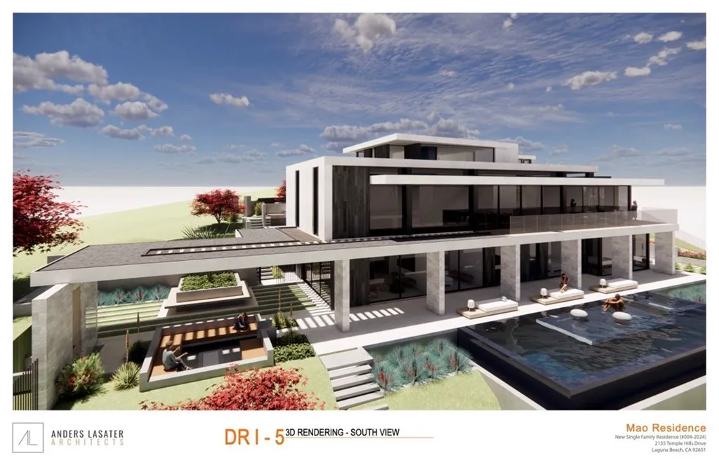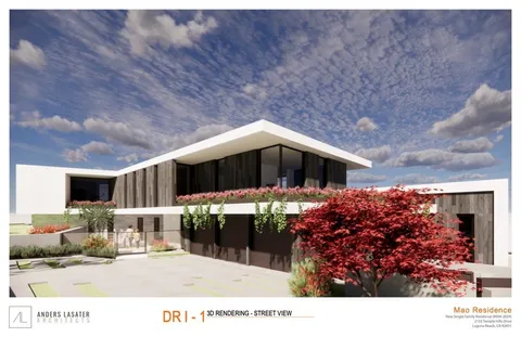 Design Review Board (DRB) Approved Plans for an award winning 7500 sq. ft. New Home. Perched atop one of Laguna Beach's most prestigious vantage points, 2155 Temple Hills Drive offers a rare blend of serenity, architectural pedigree, and breathtaking ocean views from nearly every room. Positioned on approximately one-half acre, this expansive residence showcases panoramic vistas of the Pacific, Catalina Island, and unforgettable sunsets. The current home's thoughtful design features an open main level with soaring ceilings, hardwood floors, and walls of glass that seamlessly frame the coastline. The chef's kitchen, equipped with Sub Zero, Wolf, and Bosch appliances, centers around a grand island with white granite counters - perfect for entertaining. An ocean-view breakfast nook, custom Cellinite light fixture in the dining room, and a wood-burning fireplace in the living room underscore the home's warmth and sophistication. Flexible spaces abound, including a cozy den that doubles as a fifth bedroom, a soundproofed upstairs media and game room, and a lower level that houses three bedrooms - two of them ocean-view primary suites - along with a spacious office and exercise room. Nearly every room on the lower level opens to sweeping views, while the grounds offer a generous yard with ample space for a pool, gardens, or additional outdoor amenities. Parking includes a three-car garage and a broad driveway for guests. Adding a remarkable dimension to this offering, an architectural project by Anders Lasater Architects - The Sunset Duet & Sunrise Duet - was honored at the 2025 AIA Orange County Design Awards. Recognized in the Unbuilt Category for its quiet clarity, sculptural stair design, floating upper volume, and thoughtful response to the site, the project presents an inspiring vision for a future reimagining of the property. This award-winning plan offers buyers not just a 7500SF home, but the opportunity to bring a celebrated architectural concept to life. 2155 Temple Hills Drive is more than a residence - it is a canvas for possibility, a lifestyle defined by panoramic horizons, and a showcase of design excellence in one of California's most coveted coastal settings.