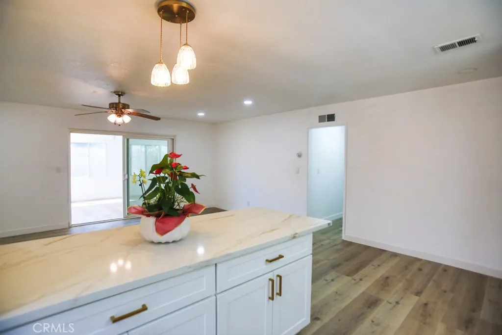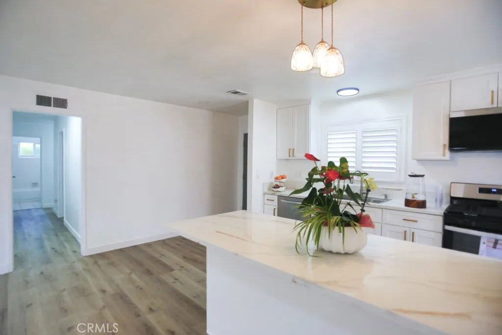 Beautifully Renovated & Move-In Ready Home with Bonus Room! This beautifully renovated home is truly move-in ready, featuring extensive updates throughout! The kitchen has been completely redone with brand-new cabinets, modern finishes, and a fresh, contemporary look. Enjoy the clean and stylish feel of new interior and exterior paint, along with new flooring throughout the home. The bright and airy living room is enhanced by brand-new recessed lighting, creating a warm and welcoming atmosphere. According to tax records, the home includes 3 bedrooms. An additional 4th bedroom (permit status unknown) provides flexibility for guests, an office, or a creative space. You'll also love the nearly 300 sq ft permitted bonus room with a new roof and ceiling - ideal for a family room, home office, or entertainment space (note: patio permit only; no side enclosures). Step outside to beautifully landscaped front and backyards, featuring mature avocado and lemon trees and lush greenery - perfect for outdoor living and entertaining. Located just minutes from the 405 freeway, this home is ideal for commuters and families alike. Don't miss this rare opportunity to own a turnkey property that combines modern updates with flexible living space and outdoor charm!