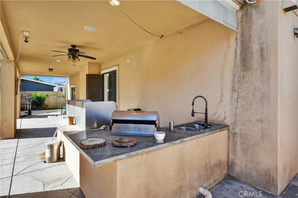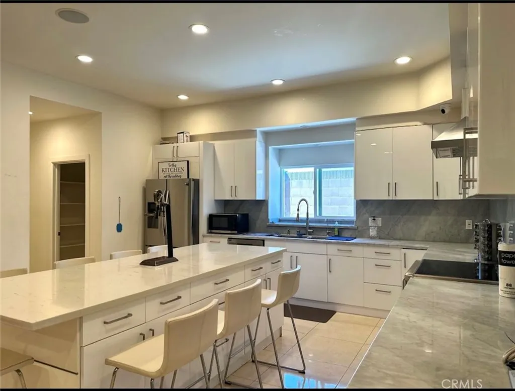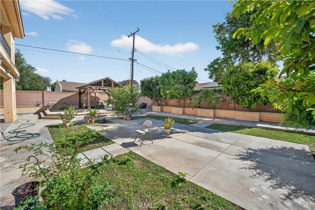 Experience elevated luxury in this exceptional, fully remodeled and expanded estate offering approximately 4,500 sq. ft. of refined living space on an expansive 9,000 sq. ft. lot. From the moment you enter, you are welcomed by a grand foyer with soaring ceilings, dramatic designer chandeliers, and an elegant wrought iron staircase that sets the tone for the home's sophisticated architectural design. Expansive living areas are enhanced by sleek porcelain tile flooring and an abundance of natural light, creating a bright yet warm and inviting atmosphere. The open-concept layout seamlessly connects the main living spaces to a beautifully appointed gourmet kitchen, ideal for both everyday living and upscale entertaining. The main level features two bedrooms, including a primary suite situated in a comfortably sized room with a spa-inspired bathroom and dual vanities, along with an additional bedroom perfect for guests or extended family. Upstairs, the home continues to impress with four additional bedrooms and a dedicated office, including a luxurious primary suite designed as a private retreat. Thoughtfully curated finishes, statement lighting, and clean contemporary lines are showcased throughout, elevating both form and function. Designed for seamless indoor-outdoor living, the property features a private balcony overlooking professionally landscaped grounds adorned with mature fruit trees and lush greenery. The resort-style backyard is an entertainer's dream, complete with a covered patio, built-in barbecue island, and fully equipped outdoor kitchen, complemented by a charming gazebo that creates a tranquil and private setting. Offered fully furnished with designer-selected pieces as showcased in the photos, this turnkey residence presents a rare opportunity for immediate luxury living or investment. Featuring a total of six bedrooms, five bathrooms, and a dedicated office, along with a fully paid-off solar system for enhanced energy efficiency, this exceptional home delivers the perfect blend of sophistication, comfort, and convenience in one of Anaheim's most desirable neighborhoods.