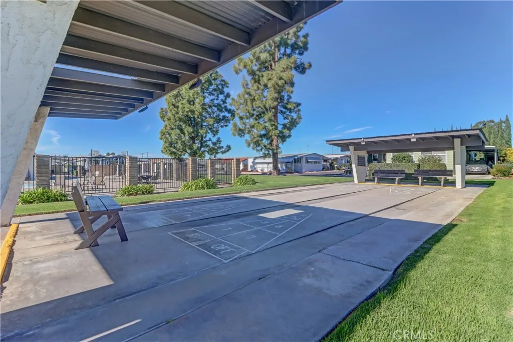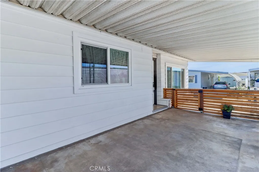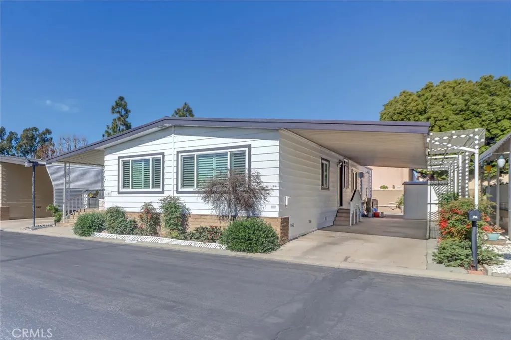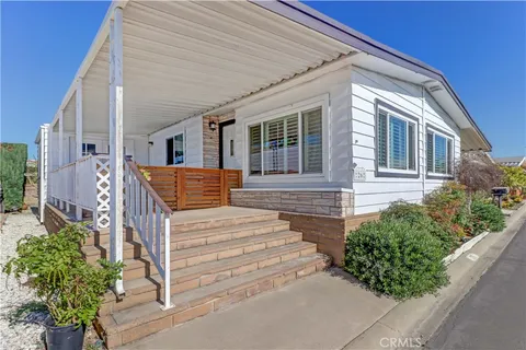 Welcome to this bright and inviting home with wonderful curb appeal, featuring a generously sized front patio perfect for morning coffee or relaxing afternoons. This peaceful 55+ senior community allows a second occupant aged 18 or older. Step inside to a spacious living room filled with natural light, complemented by well-maintained flooring, charming padded carpet, and an abundance of windows enhanced by newer shutters. The living room flows seamlessly into the dining area, which opens to the kitchen and an additional living space, creating a comfortable and functional layout ideal for everyday living and entertaining. The home offers two spacious bedrooms, each with its own attached bathroom, providing privacy and convenience. Out back, the yard presents endless possibilities whether you envision a garden retreat, outdoor entertaining space, or a personalized oasis. Additional highlights include a long carport with ample parking and two storage sheds for added convenience. Notable upgrades include a roof approximately 5 years old, a recently replaced A/C system (installed last year), and a tankless water heater, offering energy efficiency and peace of mind. Residents enjoy access to a beautiful community pool and jacuzzi, a well-appointed clubhouse, and a quiet reading room, perfect for relaxation and social gatherings.