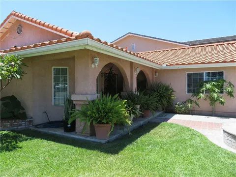 First time on the market - Custom built in 1988. Spacious, single story 3-bedroom, 2-bathroom home and 2-car garage. This corner lot home offers a nice-size wrought iron and block fenced front yard with a fabulous water fountain. As you enter the front double doors and into a nice formal living room, you'll find the open foyer leading you to the kitchen-dining room. The family room features a cozy fireplace. The primary bedroom with its updated ensuite bathroom. Two other spacious bedrooms complete this amazing home. The backyard has a covered patio, perfect for entertaining, it's spacious with lots of fruit trees and a secured block wall. The home is conveniently located for easy commute to work, amusement parks, dining, shopping or the beach. Preview it today!
