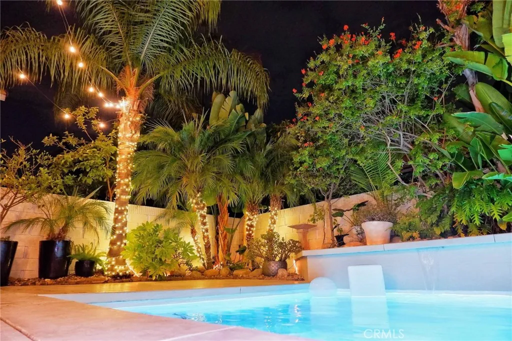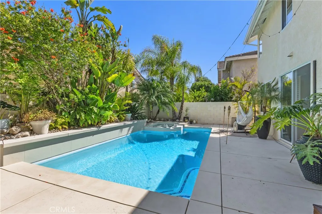Step into your own tropical oasis! Beautifully upgraded inside and out, this stunning pool home is designed for both style and comfort. From the moment you arrive, the lush landscaping and inviting curb appeal set the tone. Step inside to soaring ceilings and expansive windows that fill the home with natural light, with tile floors throughout the main level and rich hardwood upstairs. The chef's kitchen features granite countertops and full height backsplash, stainless steel appliances, and upgraded flooring, opening seamlessly to the family room with a cozy fireplace. Large windows frame views of the tropical backyard - your own private retreat with a sparkling custom pool and spa, complete with waterfalls, mood lighting, outdoor shower, and updated pool equipment, perfect for relaxing evenings or lively gatherings. Upstairs, the primary suite offers a spacious retreat perfect for a home office or workout space, along with a spa-inspired bathroom featuring dual sinks, a soaking tub, walk-in shower, and a generous walk-in closet. Two additional bedrooms share an upgraded bath, and the upstairs laundry with washer and dryer adds convenience. Additional highlights include a two-car garage with extra storage (and potential space for a third car), water softener, and thoughtful upgrades throughout. Nestled in a small, gated community with a peaceful private park, this home is truly move-in ready. Your private oasis awaits!